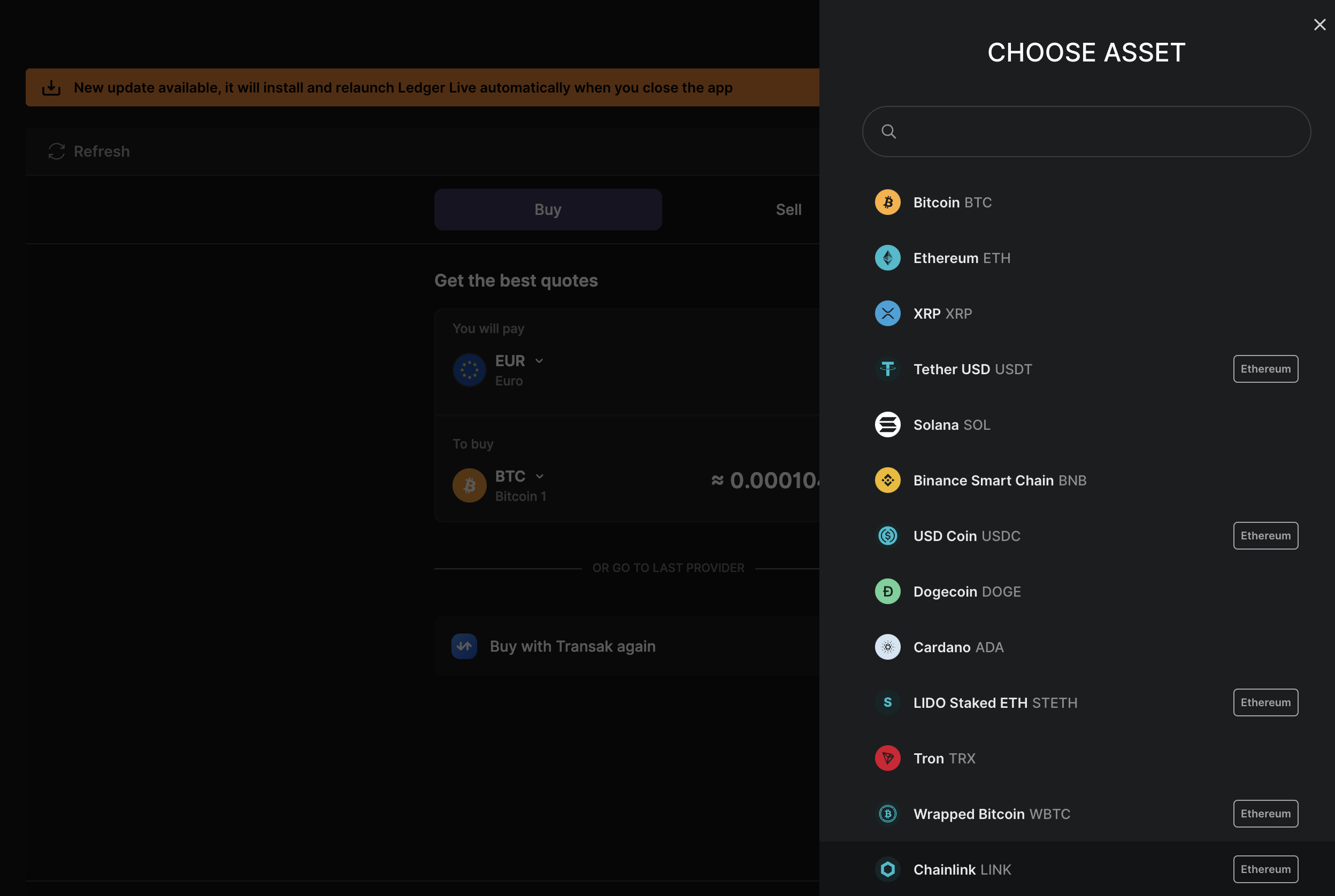 Fetch the list of supported cryptocurrencies mapped to Ledger-compatible IDs.