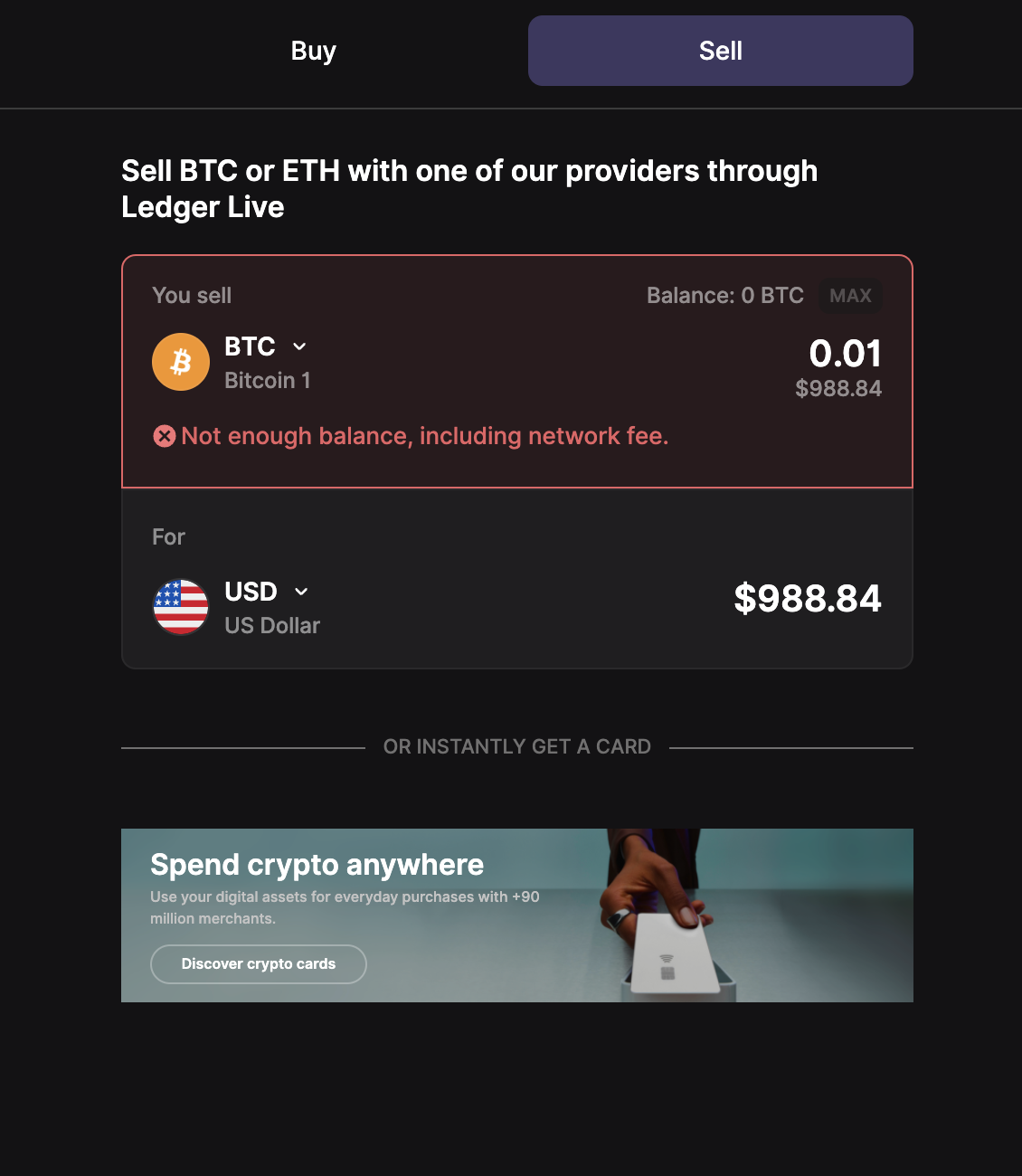 Source crypto amount submitted for quote generation.
