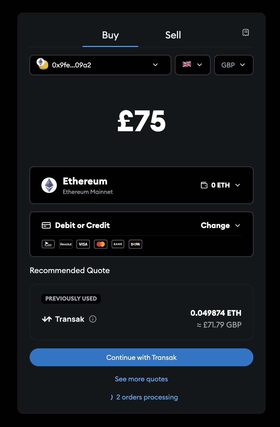 This API provide the On Ramp Quote for provided fiat and crypto currency.