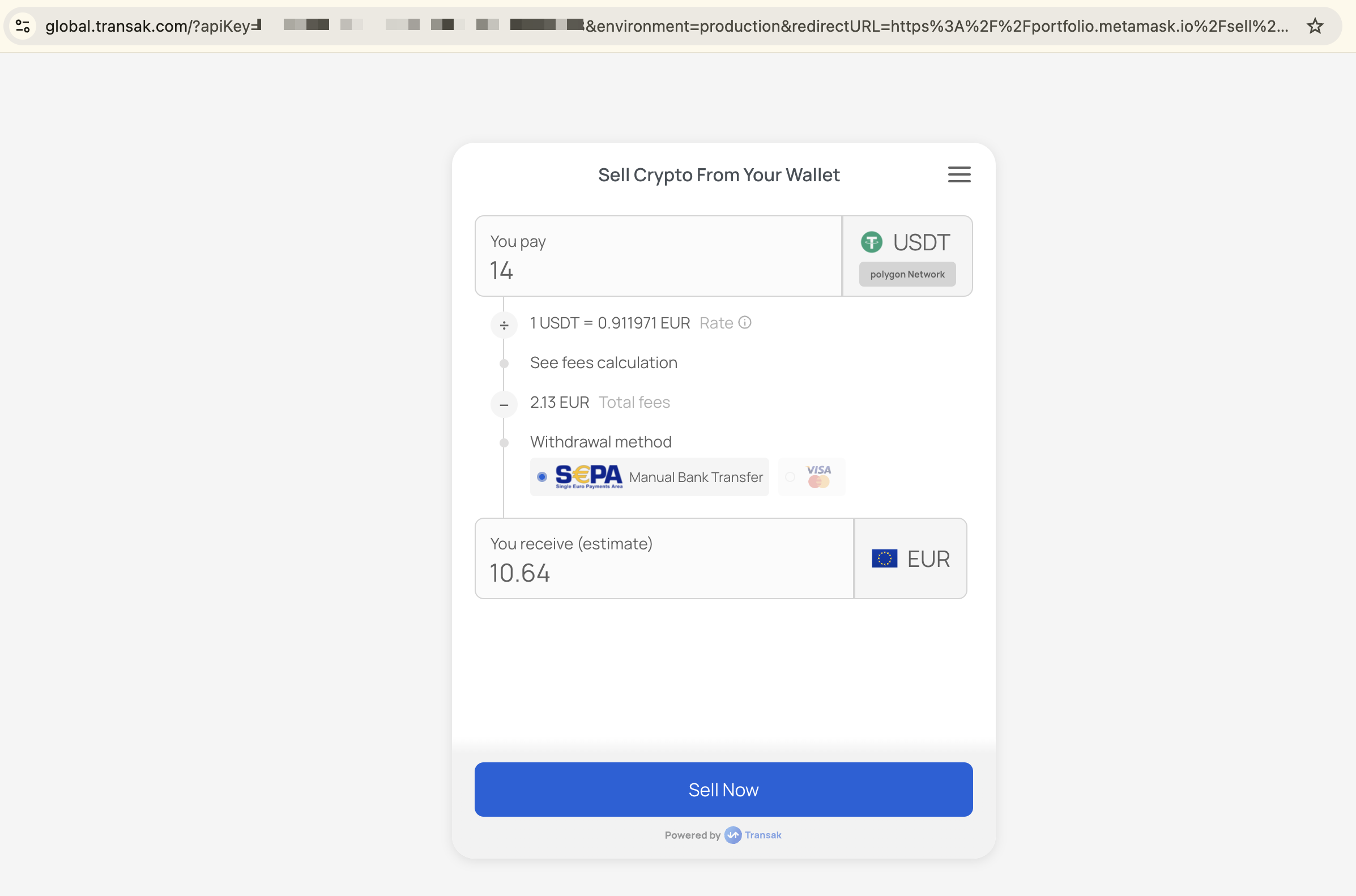 This API provide the Off Ramp Transak widget url with the specified params.