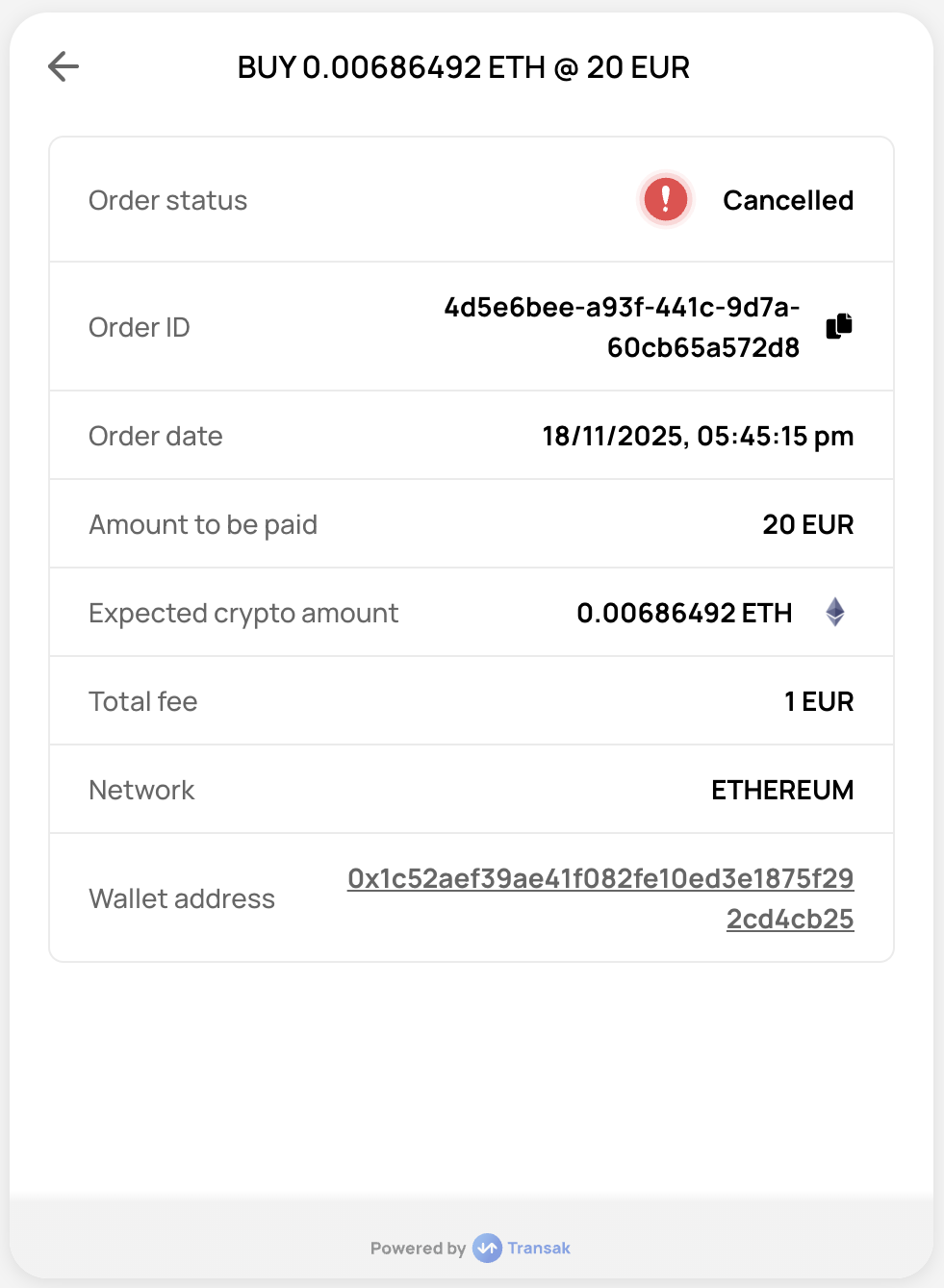 Real-time notifications for order lifecycle events. Available for both Widget and Whitelabel API integrations.
