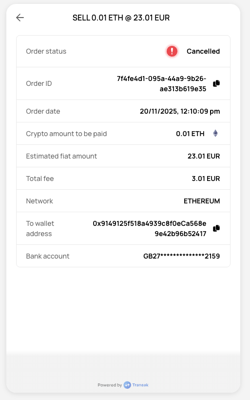 When cryptocurrency payment received from the user is refunded back to their wallet as fiat payout could not be fulfilled due to some reason.