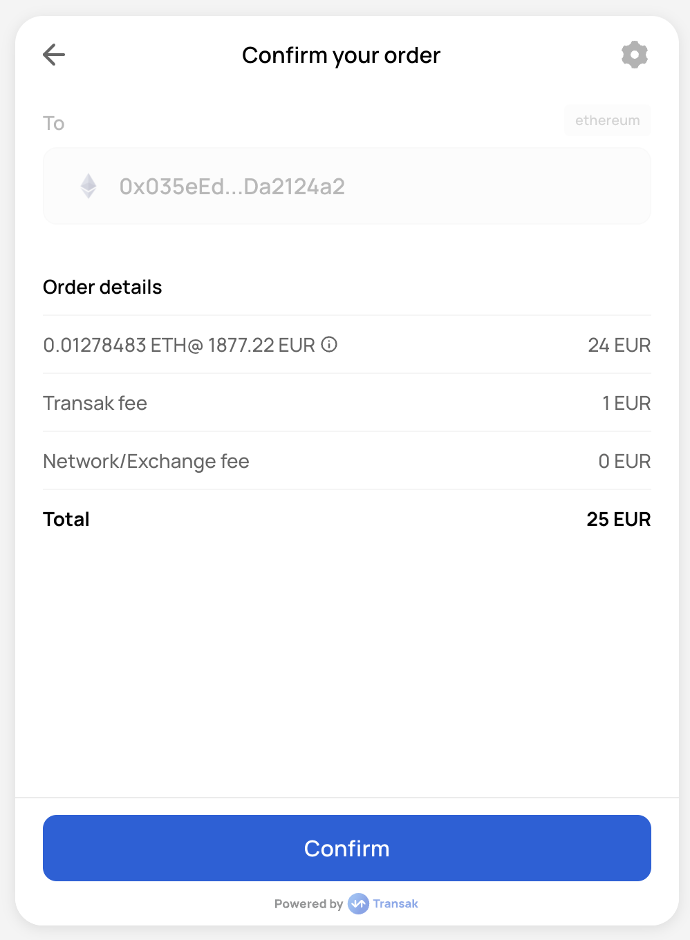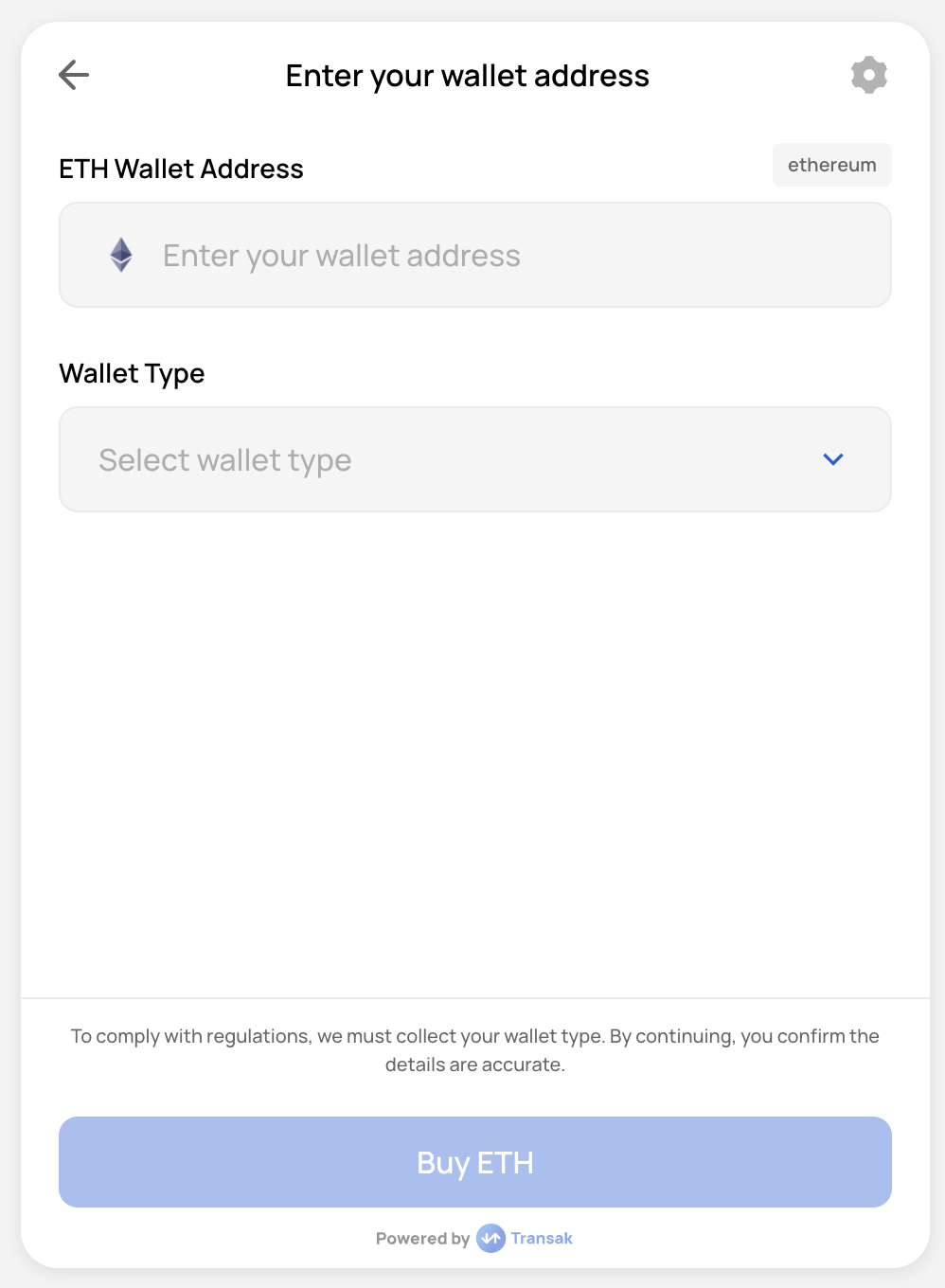 This step confirms the destination wallet for on-ramp transactions.