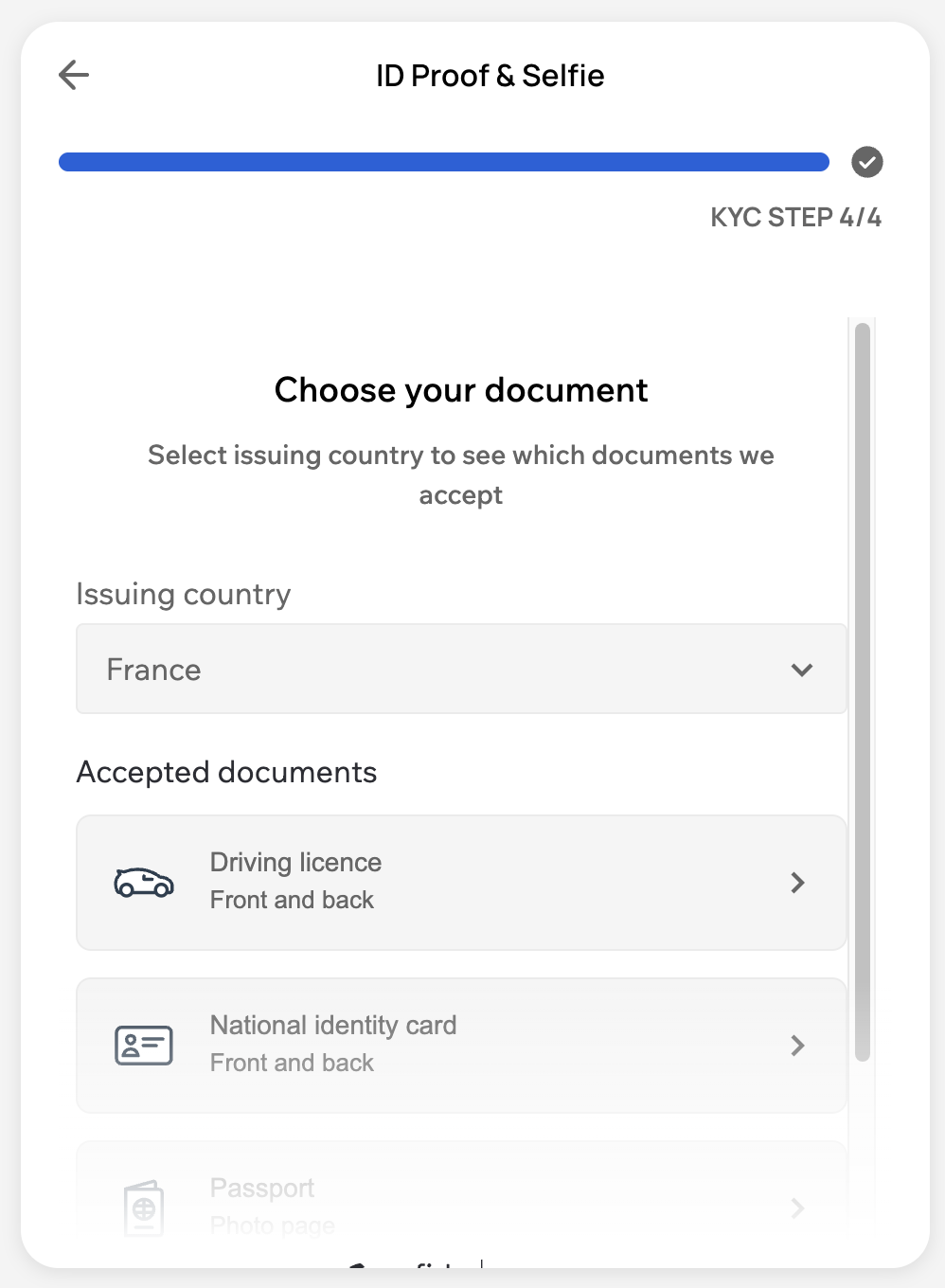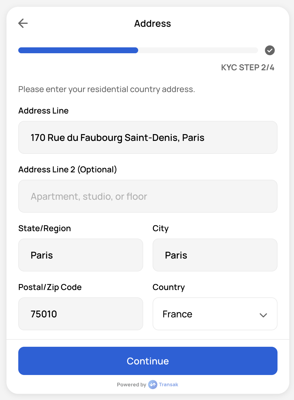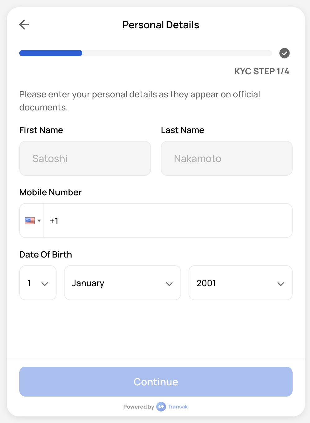 This step is not skippable in the widget and triggered only when the order value exceeds Lite KYC limits.